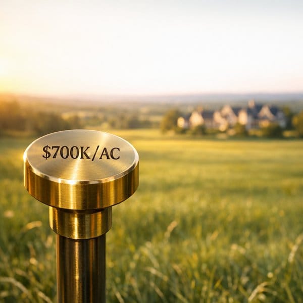 Price point: $700k/acre establishes a high-water mark for Chester County residential land